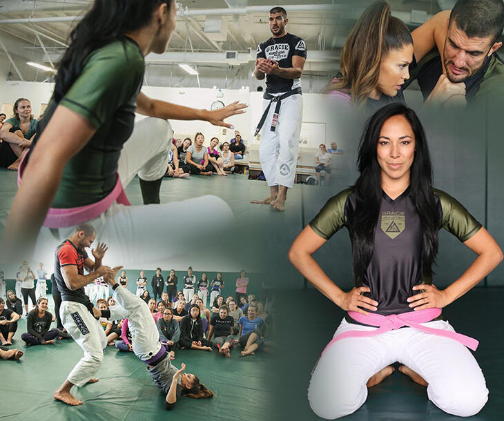 In most martial arts systems, awarding belts is the traditional way to acknowledge progress and accomplishment. With the development of the Gracie Women Empowered program, the course featured so many unique strategies, objectives, techniques, and psychology tailored to a special set of circumstances, that the standard Brazilian Jiu-Jitsu belt system did not apply. So, we decided to add an entirely new belt, and since pink was one of the only colors not used in the existing BJJ belt system, we introduced the Women Empowered Pink Belt! It not only symbolizes dedication to the techniques of the program, but also an understanding of the philosophy that is essential for survival in life-threatening scenarios. We hope that this reflexive understanding of both the philosophy and techniques will instill a confidence in women that reduces their risk of ever becoming a target in the first place. Since the program was created we have watched women dedicate countless hours to earning their pink belt, and with every pink belt earned, the value and prestige of this belt has become undeniable.